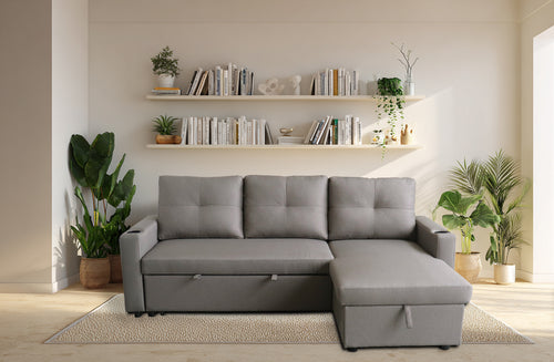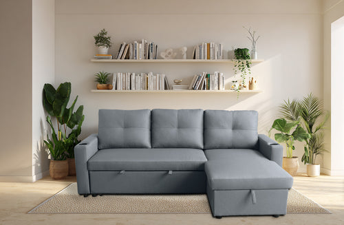 Sofá Cama seccional con portavasos y Storage
